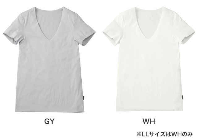 ■深めのVネック 襟を開けても見えにくい深めのVネックを採用。