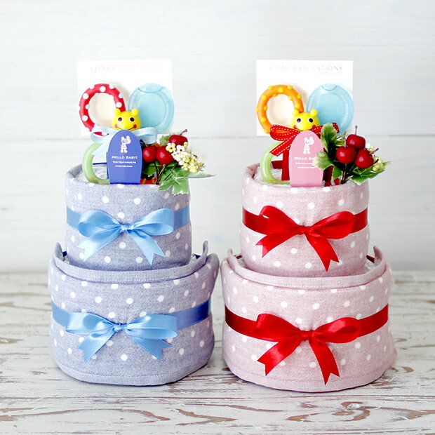紙おむつをケーキのようにはなやかにデコレーションしたギフトです。